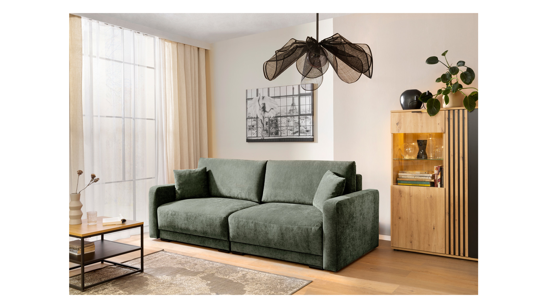 Canapea extensibila Trix (cu sezlong coltar) -G2-Wind 75 (green):