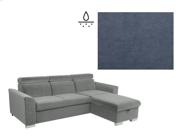 Coltarul extensibil Evia este o soluție practică intr-un apartament mic studio, sau cameră de zi. Pentru o odihna confortabila, sezutul coltarului a fost umplut cu arcuri de undă și un strat de spumă, si veți regăsi același lucru pe spătar, fapt datorită căruia este moale, confortabil, si sustine corect coloana vertebrala. Puteți, de asemenea, ajusta tetierele reglabile – în funcție de nevoile dvs. Mecanismul de extindere susținut de role (tip Delfin) va proteja suprafața parchetului si totodata, se pliază rapid și ușor. O zonă de dormit de 131 x 197 cm este locul perfect pentru odihna a doua persoane. Container mare pentru așternuturi, ascuns în sezlong, și accesul direct la acesta – si astfel plapuma și pernele sunt întotdeauna la îndemână. Colțarul se distinge prin cusături originale pe cotiere, cusături întărite, cusătură cu un singur ac, și picioare decorative din lemn de esență tare, de culoare argintie, inalte.