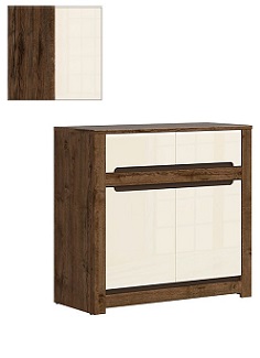 Mânerele sunt decupate în fronturi pentru a oferi mai multă subtilitate. Gama variată de module vă ajută să amenajați după cum doriți un living funcțional și atrăgător. Comodă cu sertar și dulap mic cu 2 uși.