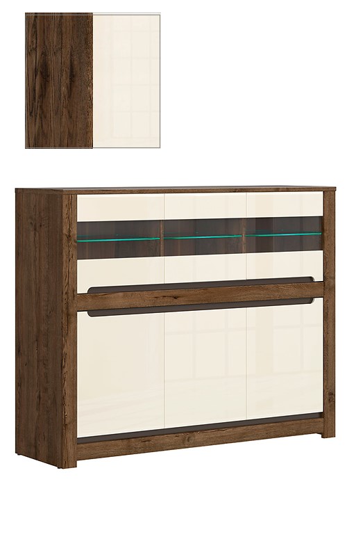 Comoda înaltă cu mini-vitrină și 6 uși poate fi accesorizată contracost cu sistem de iluminare LED: KOM3W3D_OPCJA.