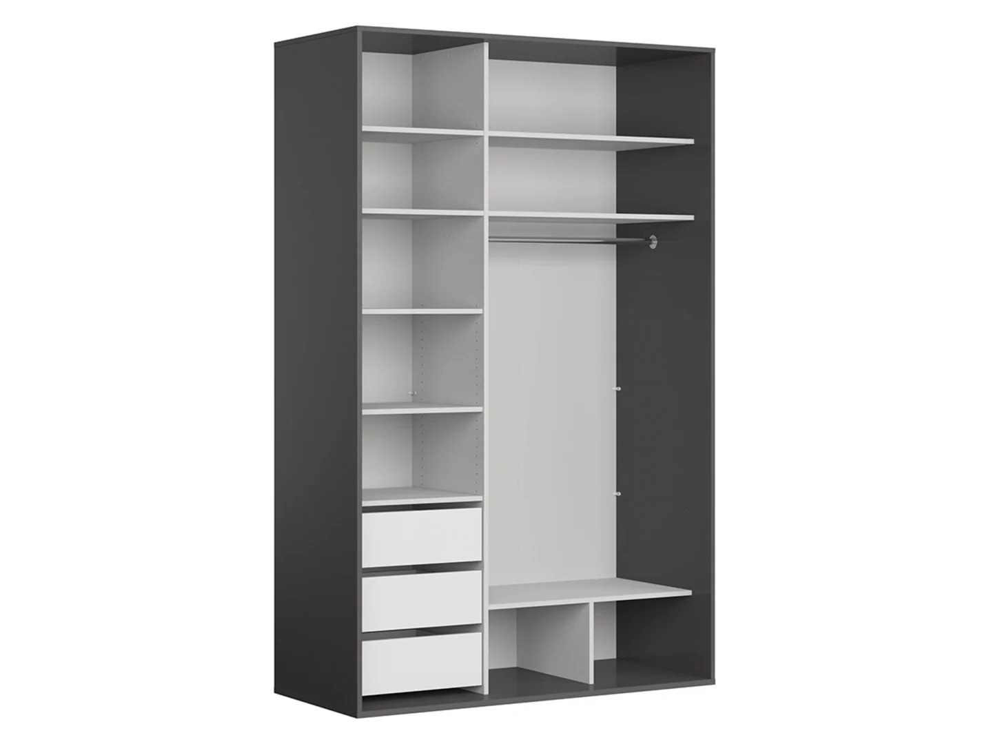 Visati la un dulap care să va permită să va depozitati toate hainele, dar să nu copleșească micul interior al unui dormitor sau al unui hol? Dulapul Flex de 150,7 x 240 x 66 cm va fi soluția optimă. Design atractiv, ușile glisante și fața în negru lucios sunt semnele sale distinctive. Dressingul e prevazut cu:  1 bara pentru umerase, 8 rafturi și 3 sertare, care oferă spațiu adecvat pentru hainele dumneavoastră. Puteți agăța comod cămăși, jachete sau bluze pe bara pentru umerase, iar sertarele pot fi folosite pentru depozitarea comodă a lenjeriei, accesoriilor sau șosetelor. Rafturile inferioare sunt spatiul perfect pentru incaltaminte, iar rafturile superioare pentru haine de sezon, lenjerie de pat sau prosoape. Pe latura stângă, puteți plasa hainele cel mai des folosite, precum hanorace, blugi sau treninguri. Un avantaj suplimentar sunt ghidajele cu închidere silențioasă și extensie completă utilizate la sertare – acestea vor permite utilizarea fără zgomot a mobilierului și accesul confortabil la conținutul acestora. Interiorul dulapului Flex si accesoriile sunt in culoare canvas in gri.