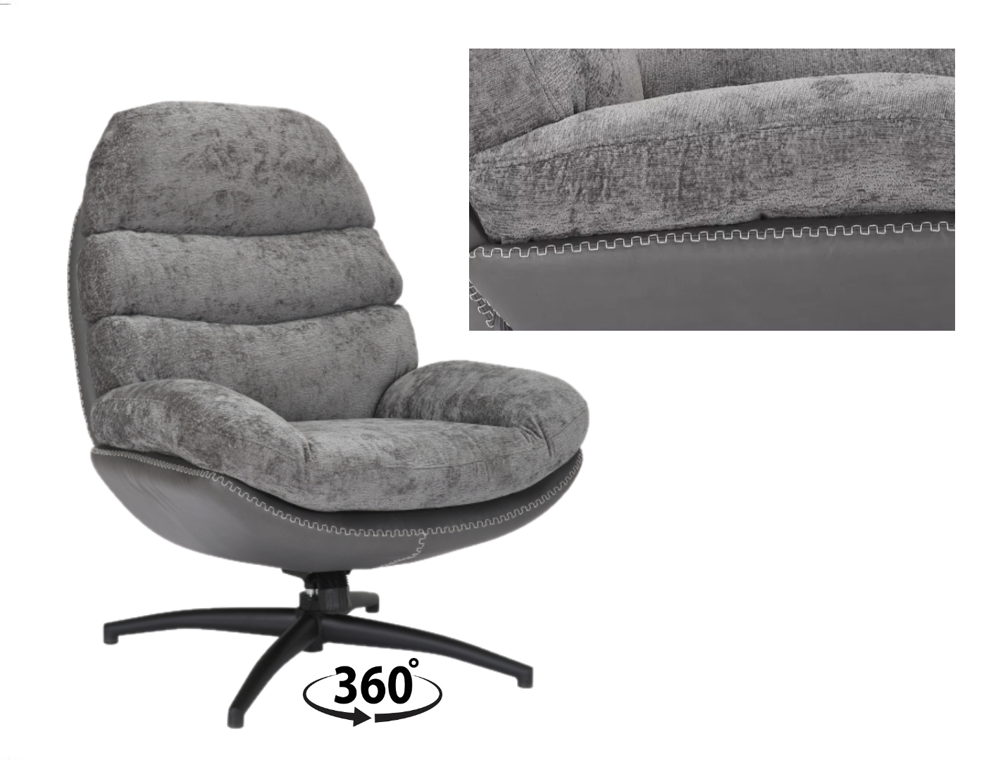 Scaunul se rotește la 360 de grade + Mecanism TILT, pentru o inclinare in unghiul cel mai comod; Tapiterie: stofa/piele sintetica
