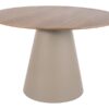 Diametru 120 cm; Înălţime 75 cm; Număr de persoane – 7 locuri; Material – blat: MDF + furnir natural, cadru – MDF  lăcuit; Culoare: stejar/bej kashmir mat; Greutate maxima admisa 30 kg; Greutate 60,50 kg.