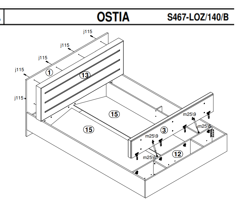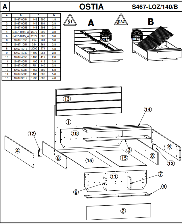 Pat Ostia cu lada+cufar LOZ/140/B (stejar artizan/Solar 99):