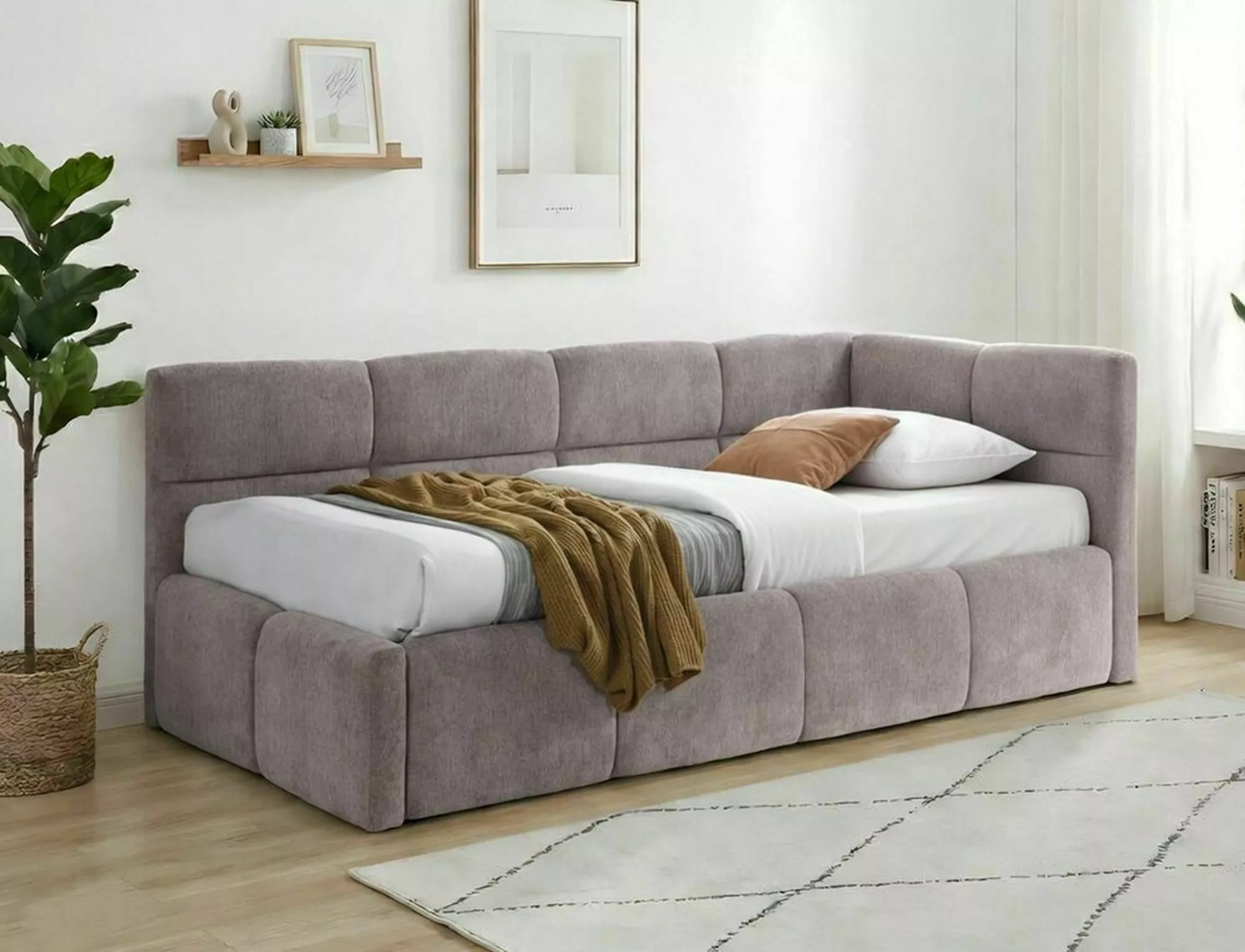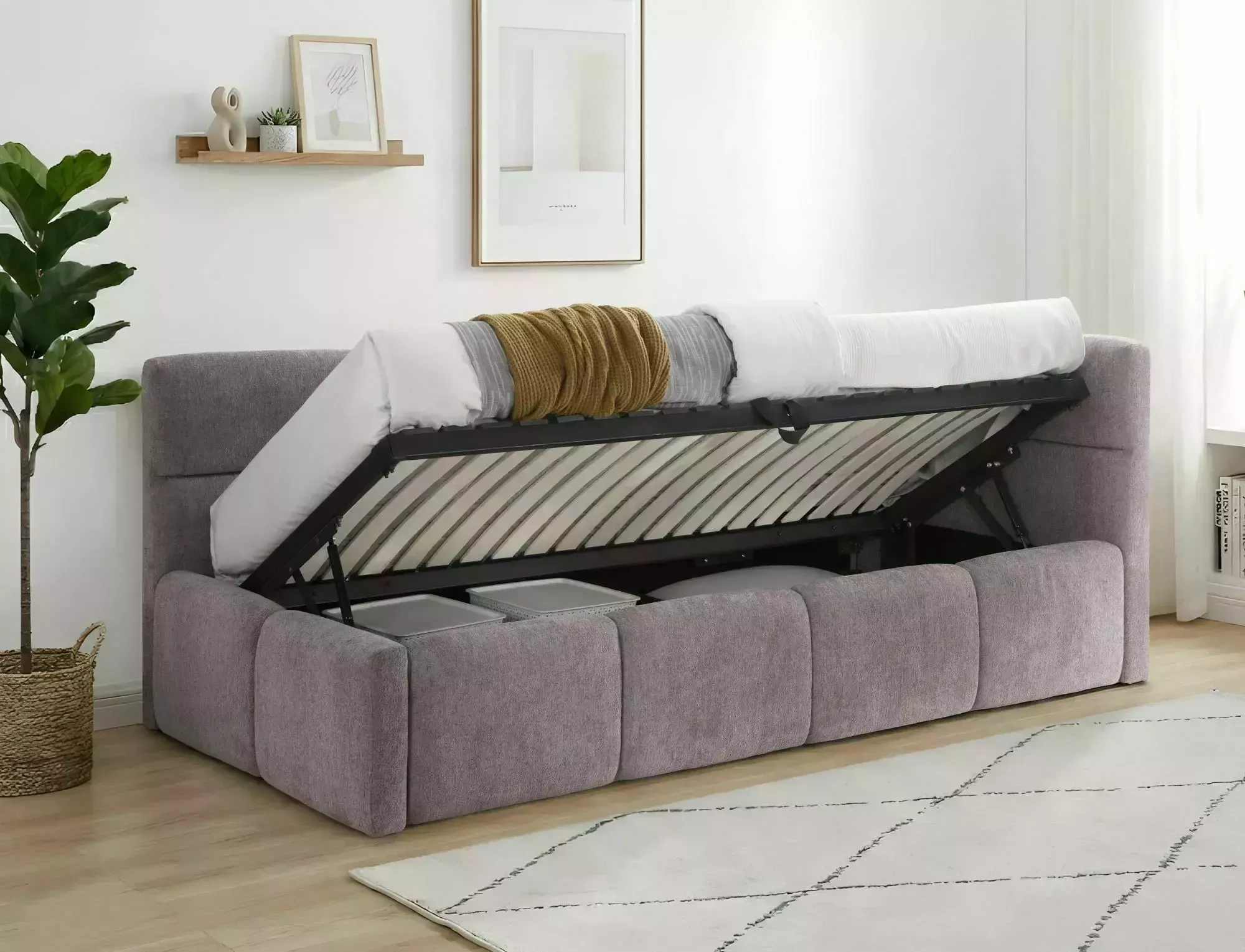 Pat tapitat tip canapea Emma 90 cu lada depozitare -Raven 91 (powder pink):