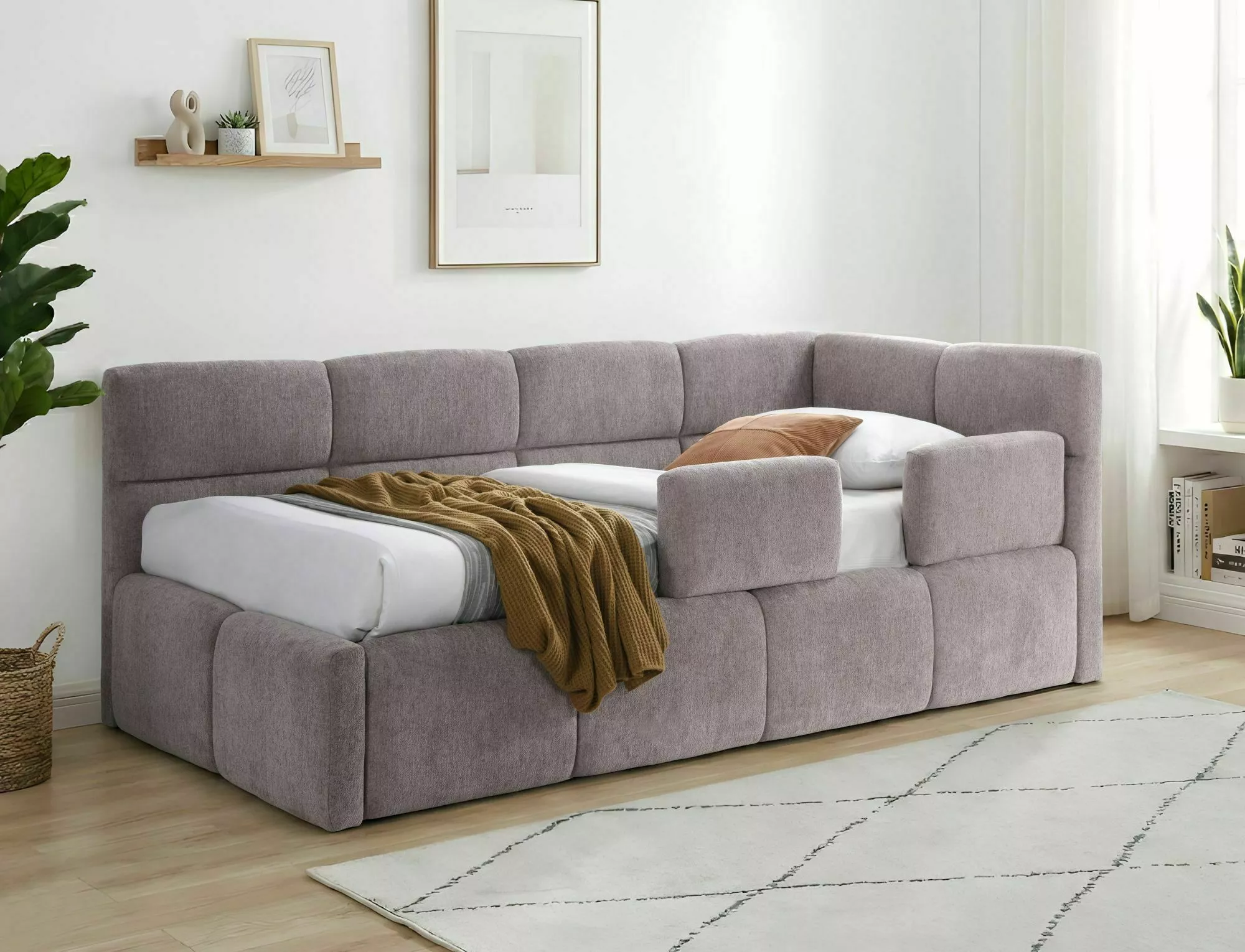 Lungime 220 cm; Lăţime 109 cm; Înălţime 89 cm tablia; Latime placa laterala 38 cm; Container pentru depozitare lenjerie pat – da; Somiera inclusa – da (somiera cu sistem de inaltare pe arcuri cu gaz); Saltea inclusa – nu; Zona de dormit/saltea necesara 90×200 cm; Adancimea pana la care intra salteaua in cadru -5 cm; Inaltime picioruse – 2 cm; Cotiera -da, una/ poate fi montata atat pe latura dreapta, cat si pe stanga; Bariera de siguranță tapitata – reglabila, detasabila: 32x54cm x2; Inaltime totala bariera 70 cm; Material: corp -PAL, tapiterie -tesatura tip chenille gama Raven + material nețesut negru (spatele).