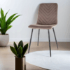 Lățime scaun 45 cm; Adâncime șezut 39 cm; Înălțime 91 cm; Înălțime șezut 51 cm; Material: cadru -metal, tapiterie – tesatura tip catifea, gama Bluvel; greutate – 4,90 kg.