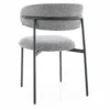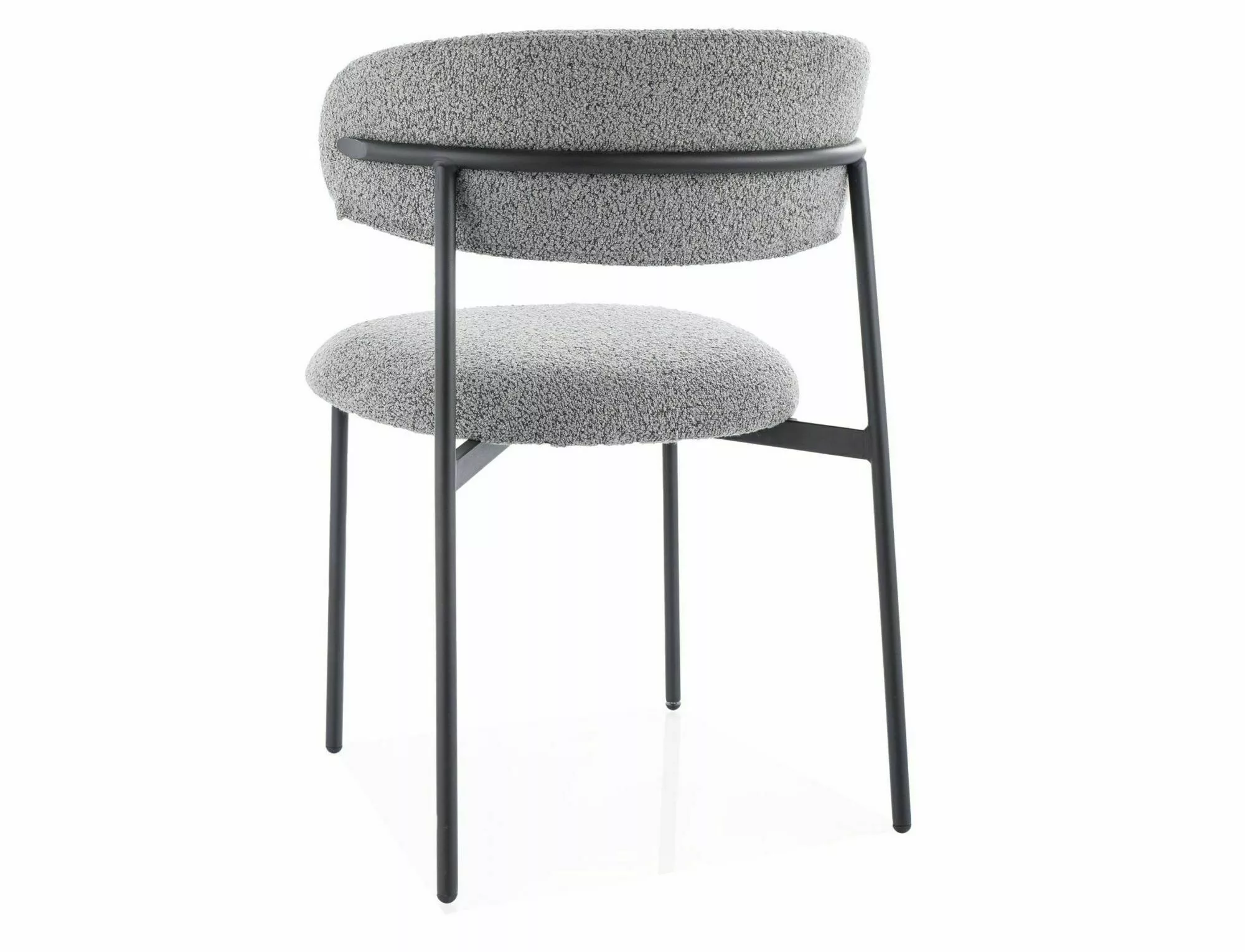Latimea scaunului 56 cm; Adâncimea scaunului 46 cm; Înălțimea totala a scaunului 80 cm; Înălțimea scaunului 49 cm; Material: tapițerie- țesătură tip boucle; picior -metal vopsit, culoare negru; Greutate 7,00 kg.