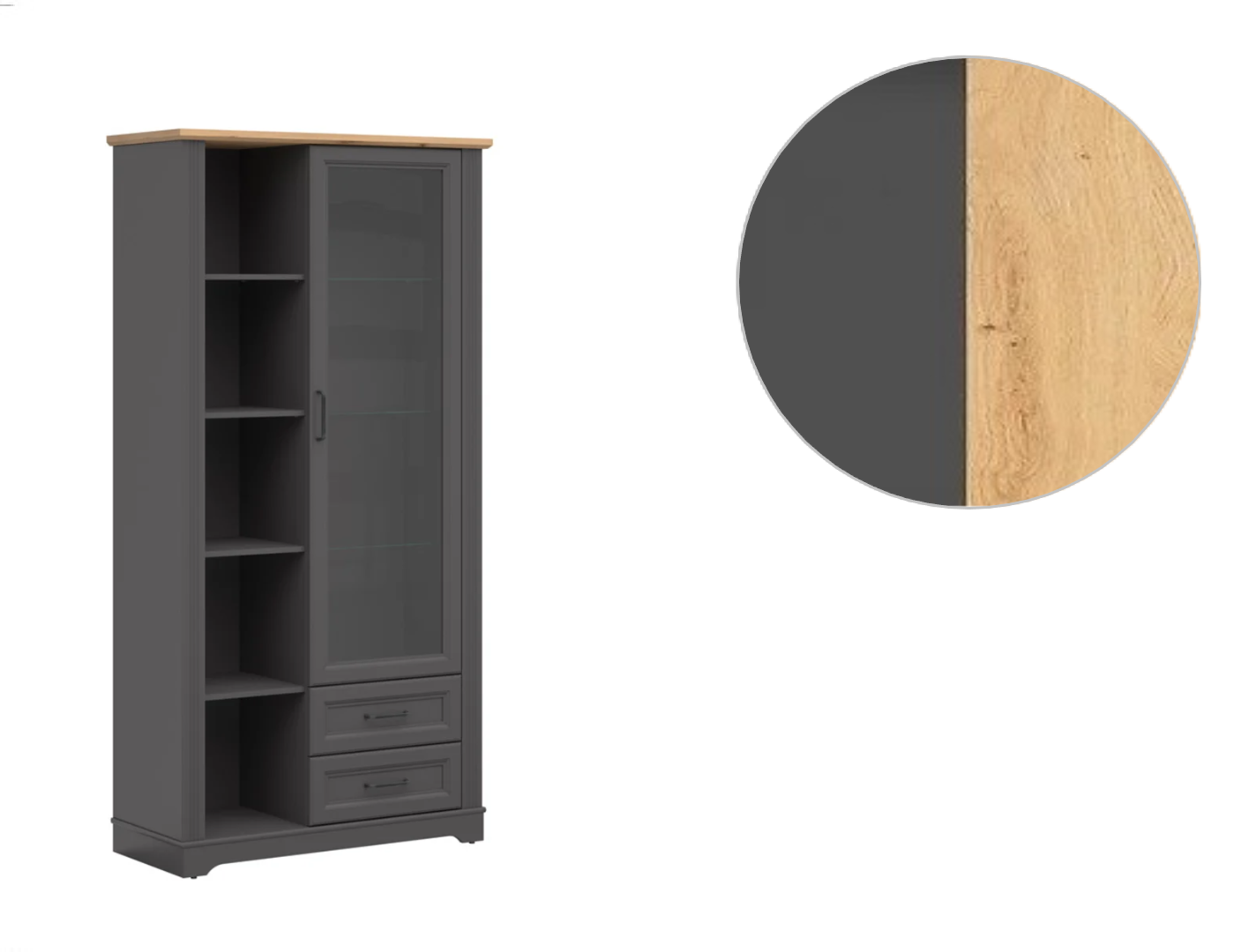 Vitrina Tolmin REG1W2S/200 (stejar artizan/grafit):